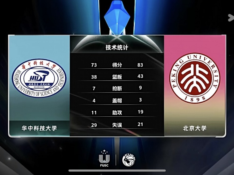 末节决战,双方连续地板球拼抢混战,但罗巧梅里突外投帮助北京大学再次领先到双位数,杨谭玥影里突外投连砍5分紧急止血,北京大学接连前场篮板二次进攻打成还能回应,黑家怡三分继续保持悬念,但北京大学接连突破回应,杨谭玥影突破再上篮追到差3分,王家绘突破再回应后又送大帽和助攻,伍湘琳断球后反击2+1杀死比赛,最终北京大学83-73力克华中科技,挺进决赛。