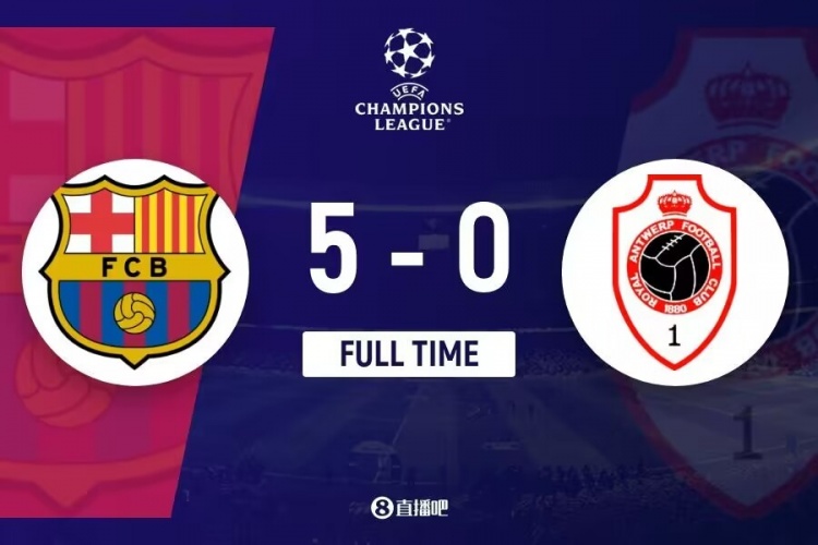 下半场补时3分钟,巴萨5-0安特卫普。
