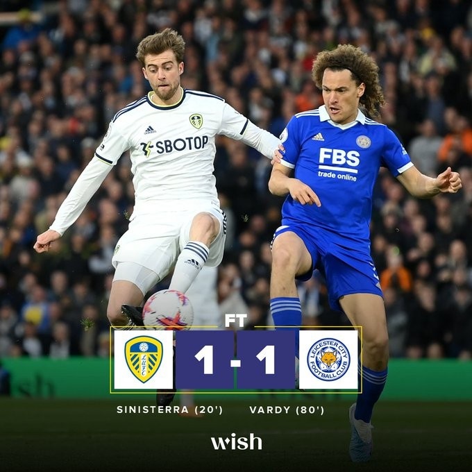 4月26日讯 英超第33轮联赛完赛一场,主场作战的利兹联痛失好局,被莱斯特城在最后阶段扳平,两队距离降级区仅咫尺之遥。