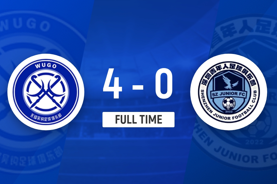 全场比赛结束,无锡吴钩4-0深圳青年人。
