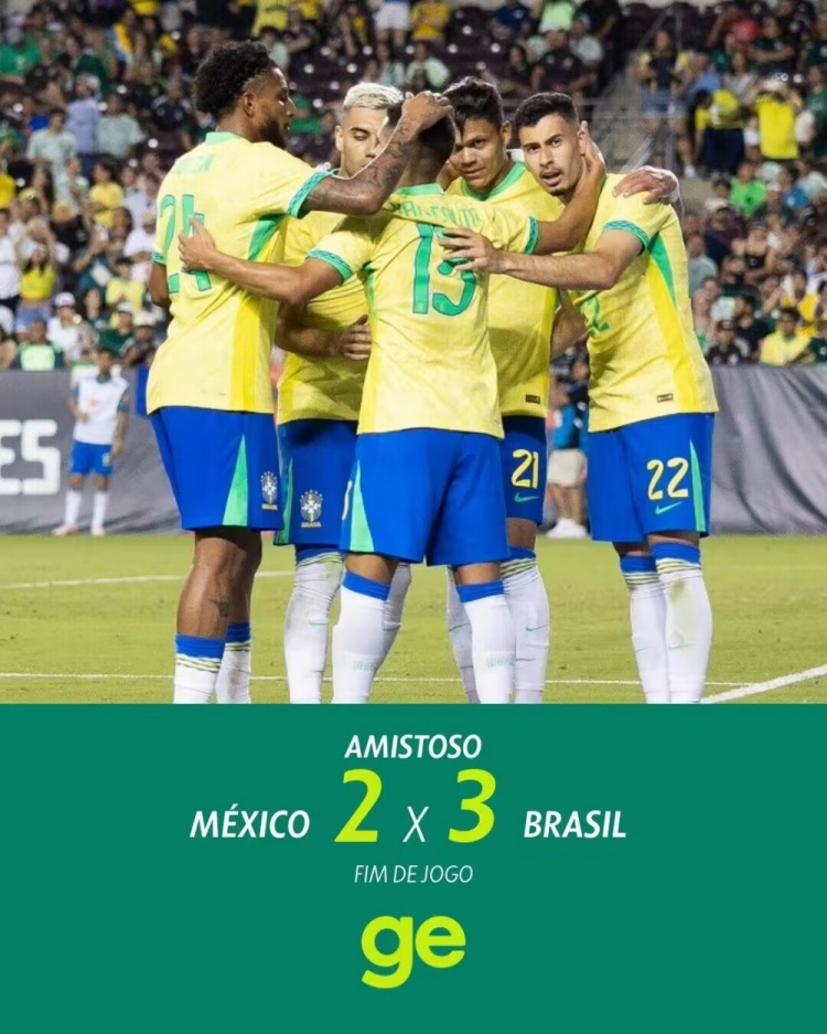 6月8日讯 北京时间6月8日早上9:00,足球友谊赛,巴西对阵墨西哥。上半场,佩雷拉闪击,阿利森险送礼。下半场,马丁内利包抄破门,奎因内斯扳回一球,马丁内斯93分扳平,恩德里克96分钟绝杀。全场结束,巴西3-2墨西哥。