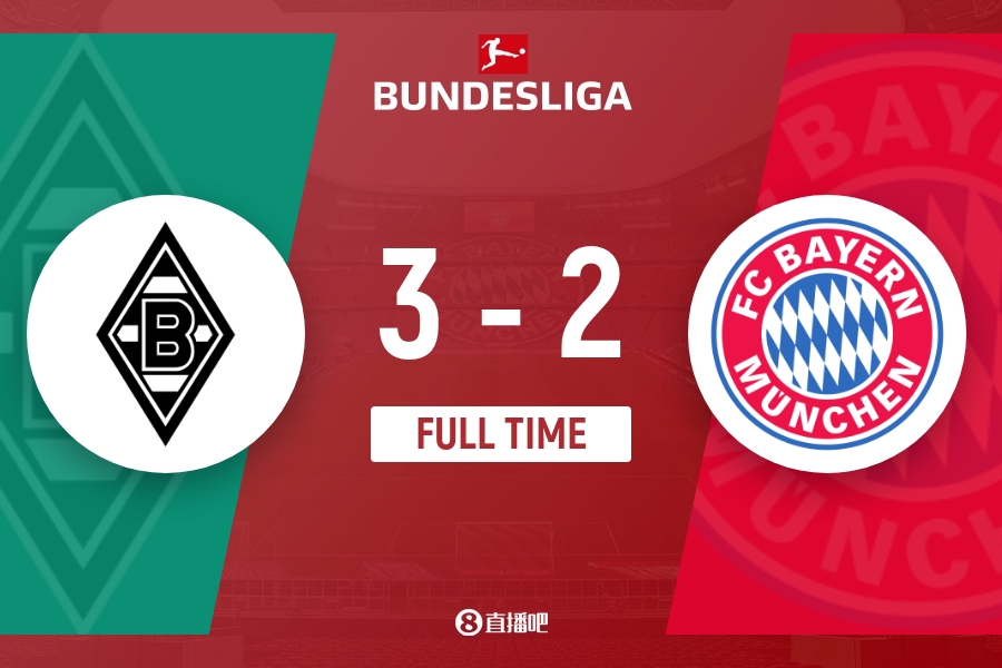 下半场伤停补时4分钟,全场比赛结束,最终拜仁2-3不敌门兴。