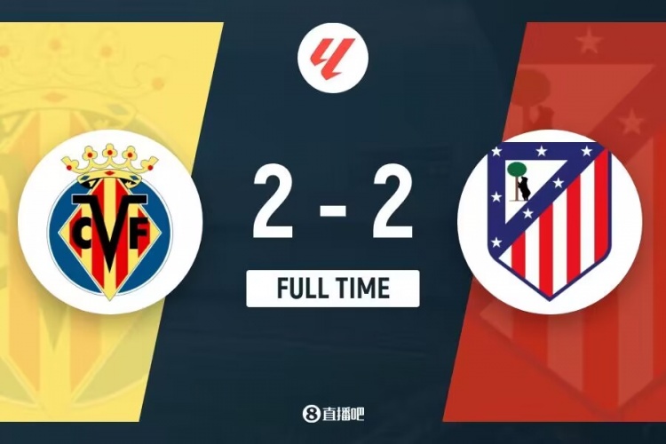 全场比赛结束,马竞2-2比利亚雷亚尔。