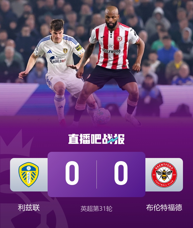 3月22日讯 北京时间3月22日凌晨4时整,2025-26赛季英超第31轮在埃兰路球场展开角逐,利兹联主场迎战布伦特福德。上半场双方2人染黄,下半场两队均无建树,最终利兹联主场0-0闷平布伦特福德。利兹联联赛6轮不胜,先赛积33分领先降级区4分,小蜜蜂遭遇3连平,积46分位居第7,距前5名欧战区3分。